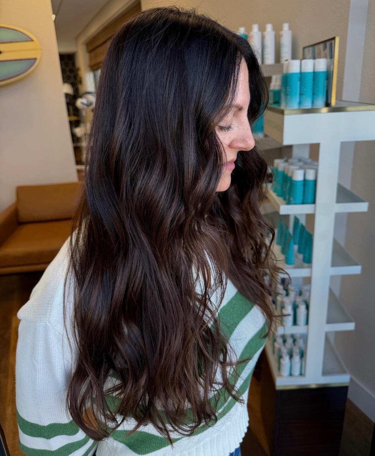 I specialize brunettes, lived-in color, and blonding, with an emphasis on low-maintenance hair that grows out seamlessly.